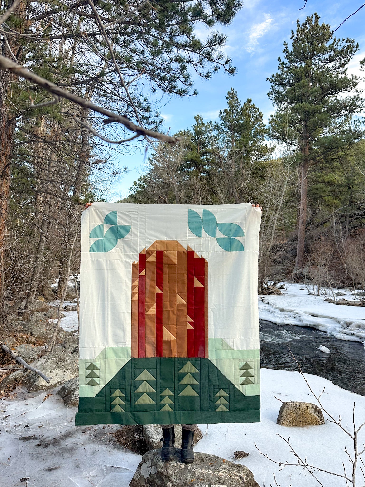 The "Rocky Mountain Road Trip" quilt series is an abstract, modern interpretation of a Rocky Mountain road trip— a journey through four iconic landscapes of the American West. from towering peaks to winding roads, flowing rivers, and expansive valleys. This four-part quilt series captures the rugged beauty and ever-changing terrain of the Rockies, each quilt offering a unique view of the natural world as it unfolds on a mountain adventure.